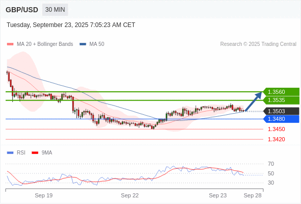 在 1.3480 之上,看涨,目标价位为 1.3535 ,然后为 1.3560 。