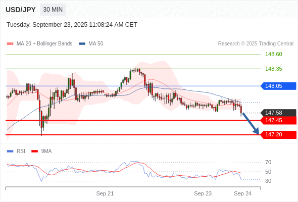 在 148.05 之下,看跌,目标价位为 147.45 ,然后为 147.20 。