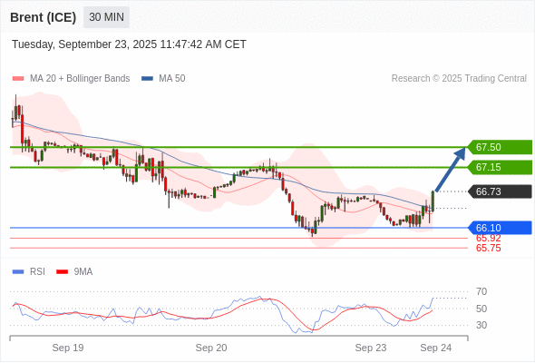 在 66.10 之上,看涨,目标价位为 67.15 ,然后为 67.50 。