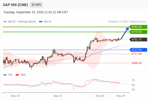 在 6727.00 之上,看涨,目标价位为 6770.00 ,然后为 6782.00 。