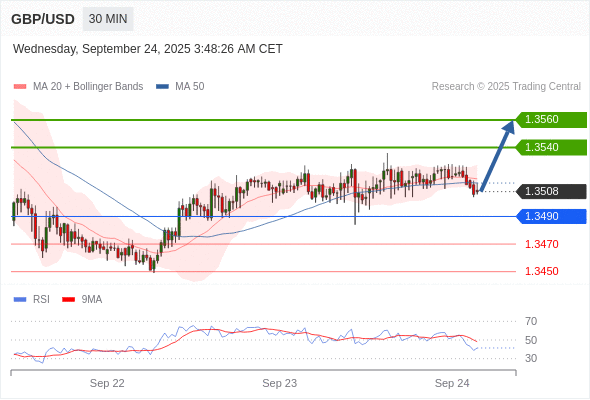 在 1.3490 之上,看涨,目标价位为 1.3540 ,然后为 1.3560 。