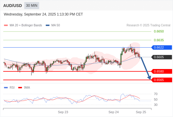 在 0.6622 之下,看跌,目标价位为 0.6580 ,然后为 0.6565 。