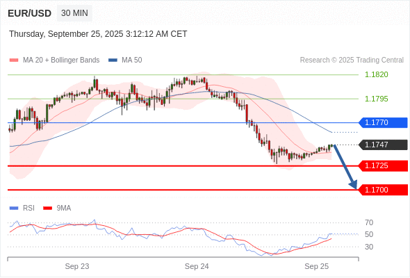 在 1.1770 之下,看跌,目标价位为 1.1725 ,然后为 1.1700 。