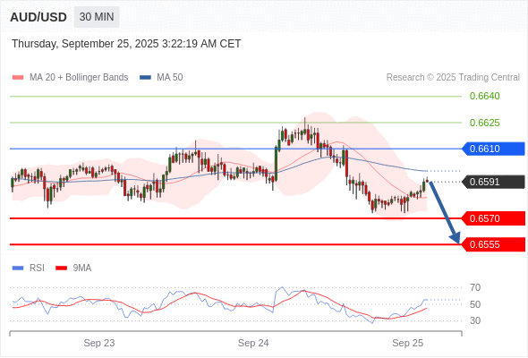 在 0.6610 之下,看跌,目标价位为 0.6570 ,然后为 0.6555 。