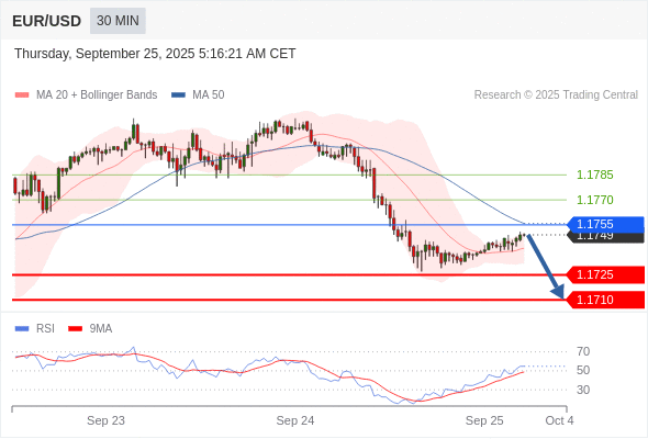 交易策略: 在 1.1755 之下,看跌,目标价位为 1.1725 ,然后为 1.1710 。