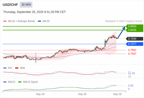 交易策略: 看涨,当 0.7977 为支撑位,目标定在0.8050。