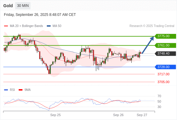 在 3728.00 之上,看涨,目标价位为 3761.00 ,然后为 3775.00 。