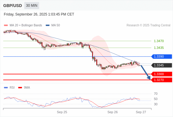 在 1.3390 之下,看跌,目标价位为 1.3300 ,然后为 1.3270 。