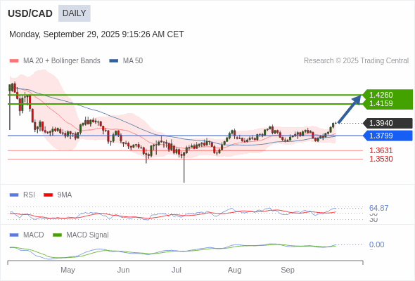 美元/加元 短线 : 看涨,当 1.3799 为支撑位。