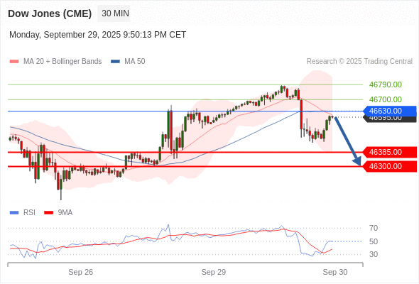 在 46630.00 之下,看跌,目标价位为 46385.00 ,然后为 46300.00 。