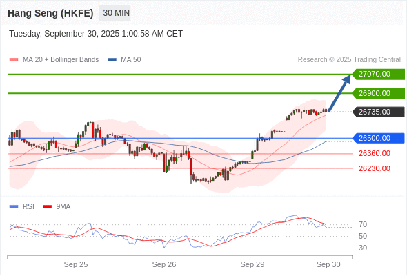 交易策略: 在 26500.00 之上,看涨,目标价位为 26900.00 ,然后为 27070.00 。