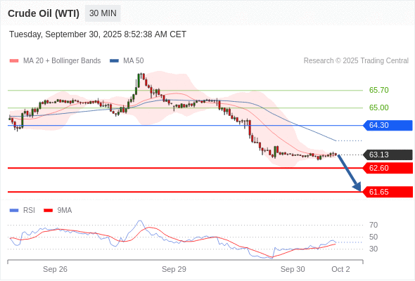 美国原油 (WTI) 期货 (X5) 当日内: 存在压力。