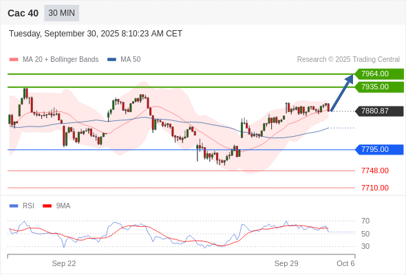 Cac 40 当日内: 在7795.00之上,看涨。