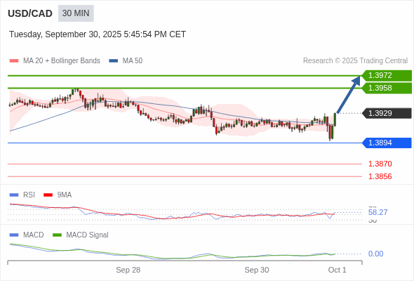 首页 > > 美元/加元 当日内 : 看涨,当 1.3894 为支撑位。