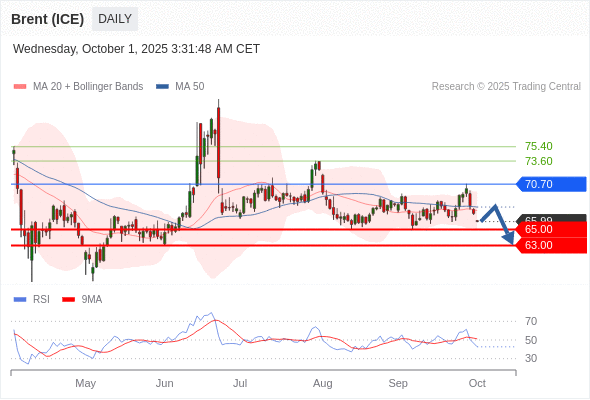在 70.70 之下,看跌,目标价位为 65.00 ,然后为 63.00 。