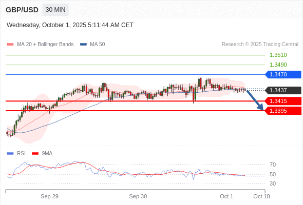 在 1.3470 之下,看跌,目标价位为 1.3415 ,然后为 1.3395 。