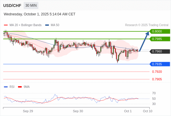 在 0.7935 之上,看涨,目标价位为 0.7985 ,然后为 0.8000 。