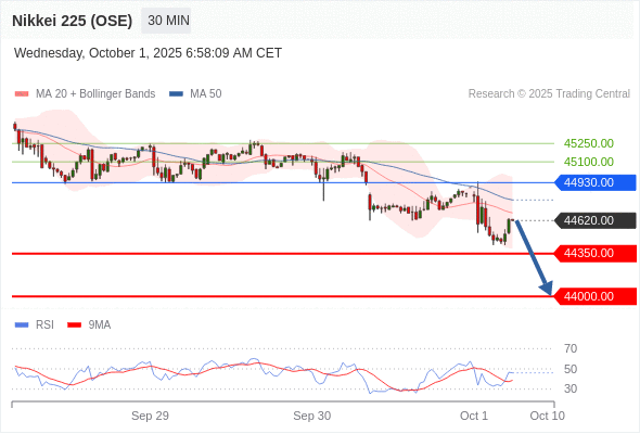 交易策略: 在 44930.00 之下,看跌,目标价位为 44350.00 ,然后为 44000.00 。
