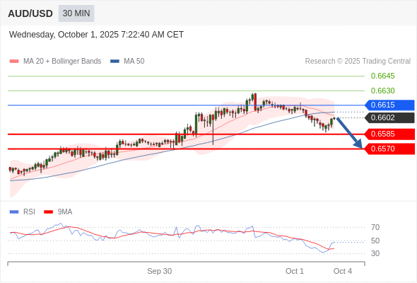 在 0.6615 之下,看跌,目标价位为 0.6585 ,然后为 0.6570 。