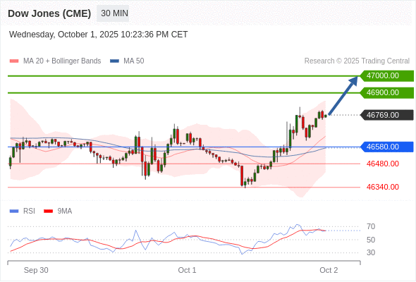 在 46580.00 之上,看涨,目标价位为 46900.00 ,然后为 47000.00 。