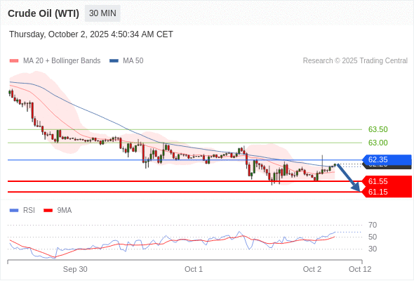 在 62.35 之下,看跌,目标价位为 61.55 ,然后为 61.15 。