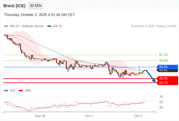 在 66.05 之下,看跌,目标价位为 65.05 ,然后为 64.70 。