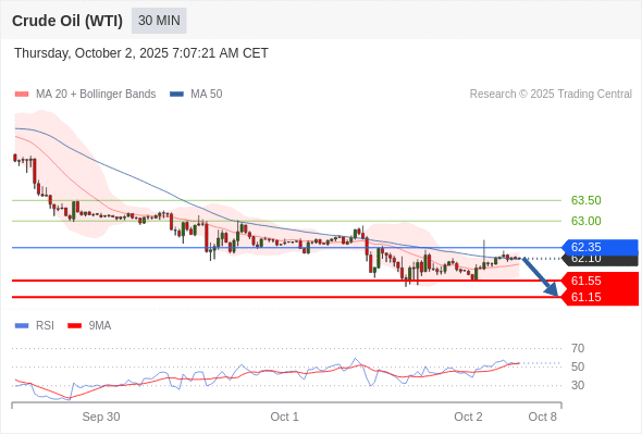在 62.35 之下,看跌,目标价位为 61.55 ,然后为 61.15 。
