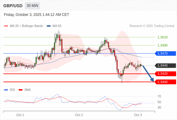 交易策略: 在 1.3470 之下,看跌,目标价位为 1.3420 ,然后为 1.3400 。