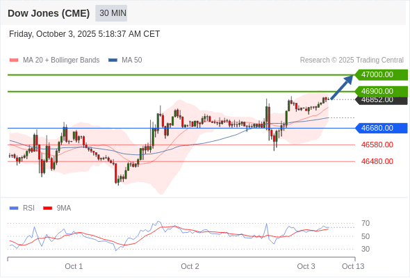 在 46680.00 之上,看涨,目标价位为 46900.00 ,然后为 47000.00 。