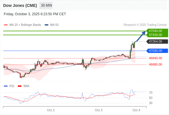 在 47030.00 之上,看涨,目标价位为 47430.00 ,然后为 47530.00 。