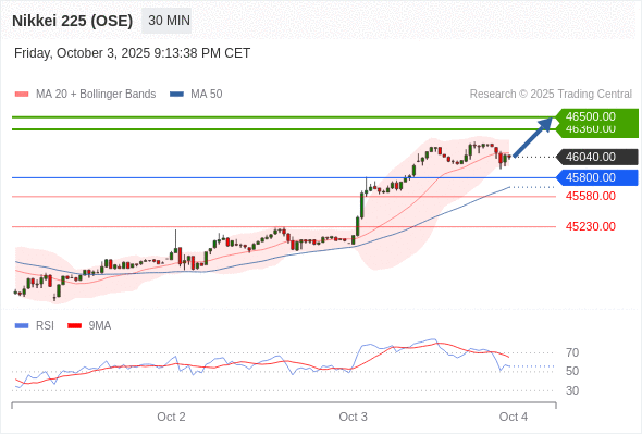 日经225股指期货 (OSE) 当日内: 超短线(当日内)支撑位在45800.00附近。
