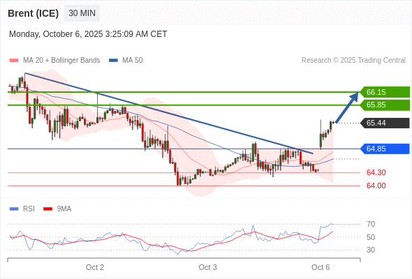 在 64.85 之上,看涨,目标价位为 65.85 ,然后为 66.15 。