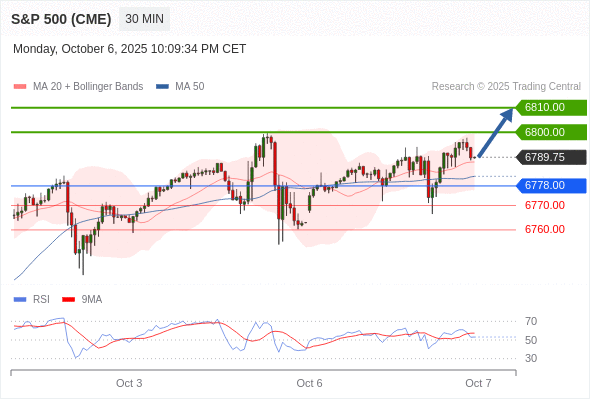 在 6778.00 之上,看涨,目标价位为 6800.00 ,然后为 6810.00 。
