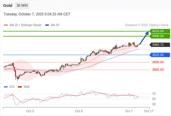 在 3925.00 之上,看涨,目标价位为 4000.00 ,然后为 4020.00 。