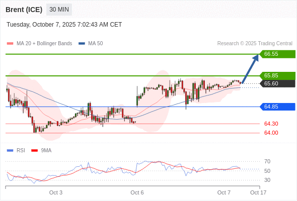 在 64.85 之上,看涨,目标价位为 65.85 ,然后为 66.55 。