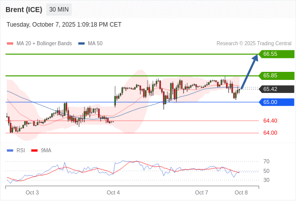 在 65.00 之上,看涨,目标价位为 65.85 ,然后为 66.55 。
