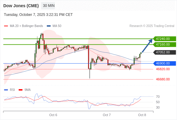 在 46900.00 之上,看涨,目标价位为 47160.00 ,然后为 47240.00 。