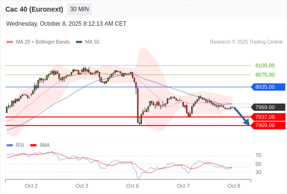 在 8035.00 之下,看跌,目标价位为 7937.00 ,然后为 7909.00 。