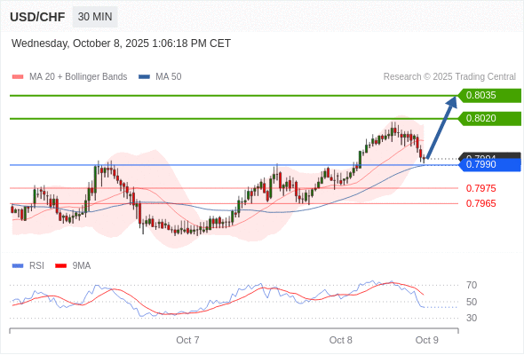 在 0.7980 之上,看涨,目标价位为 0.8030 ,然后为 0.8045 。