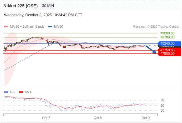 在 48240.00 之下,看跌,目标价位为 47750.00 ,然后为 47500.00 。