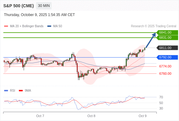 在 6792.00 之上,看涨,目标价位为 6831.00 ,然后为 6841.00 。