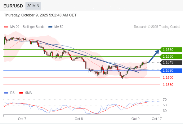 在 1.1620 之上,看涨,目标价位为 1.1660 ,然后为 1.1680 。