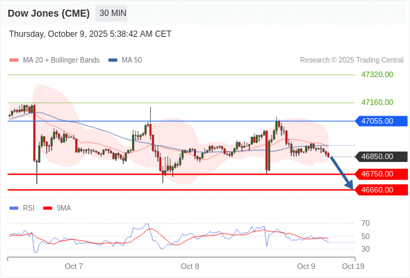 交易策略: 在 47055.00 之下,看跌,目标价位为 46750.00 ,然后为 46660.00 。