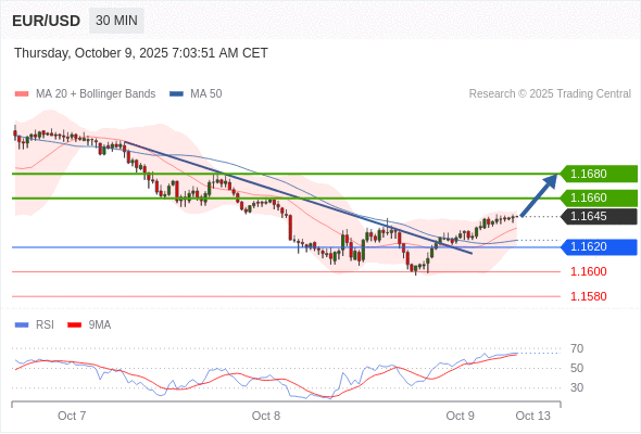 在 1.1620 之上,看涨,目标价位为 1.1660 ,然后为 1.1680 。