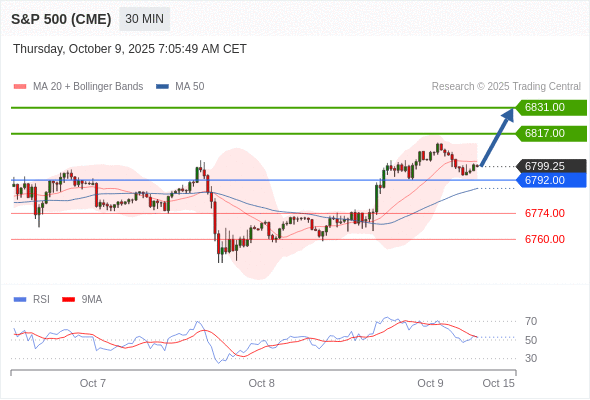 在 6792.00 之上,看涨,目标价位为 6817.00 ,然后为 6831.00 。