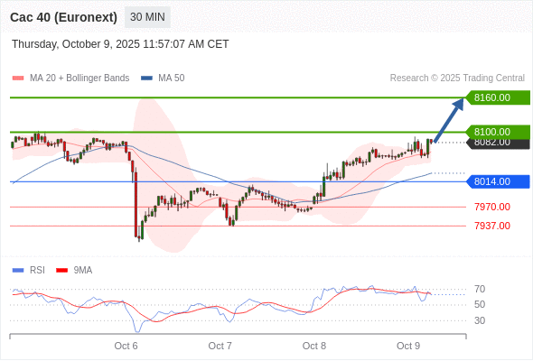 法国CAC指数期货 (Euronext) (V5) 当日内: 期待8100.00。