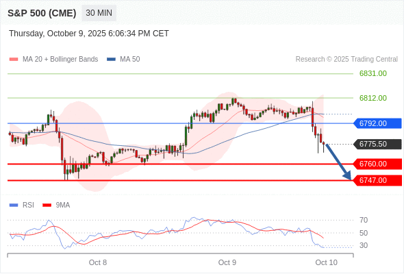 交易策略: 在 6792.00 之下,看跌,目标价位为 6760.00 ,然后为 6747.00 。