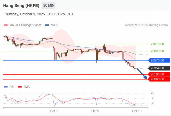在 26570.00 之下,看跌,目标价位为 26190.00 ,然后为 26060.00 。