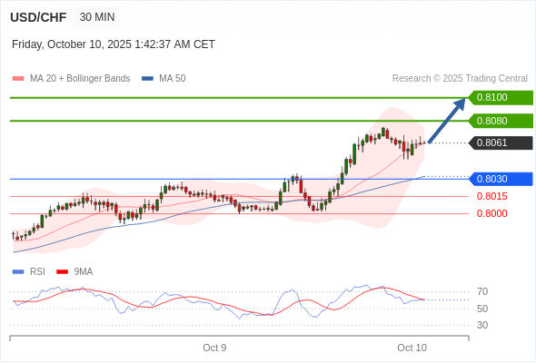 在 0.8030 之上,看涨,目标价位为 0.8080 ,然后为 0.8100 。