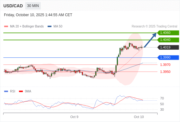 在 1.3990 之上,看涨,目标价位为 1.4040 ,然后为 1.4060 。